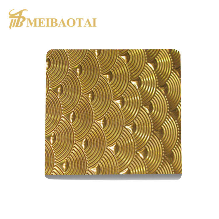 O estampado pode ser realizado em superfícies de chapa de aço inoxidável 2B, espelho ou NO.4 e fazer revestimento PVD após o estampado.